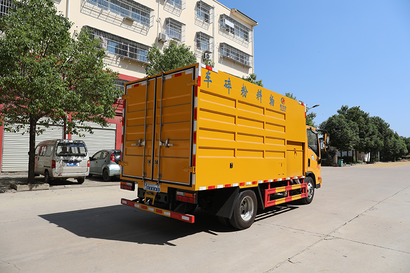 CLW5040TWFCG6型物料粉碎車又名樹枝粉碎車,由一臺(tái) 900 型粉碎機(jī)和料倉(cāng)以及出料裝置組成。粉碎機(jī)由底盤上安裝的分動(dòng)箱帶動(dòng),不需要副發(fā)動(dòng)機(jī),粉碎的料由噴口噴入料倉(cāng),料倉(cāng)底部有出料絞龍,由液壓馬達(dá)驅(qū)動(dòng)。該車主要用于城鎮(zhèn)園林、高速公路、電力部門,是集園林樹枝粉碎、修剪、運(yùn)輸一體的特種作業(yè)車。