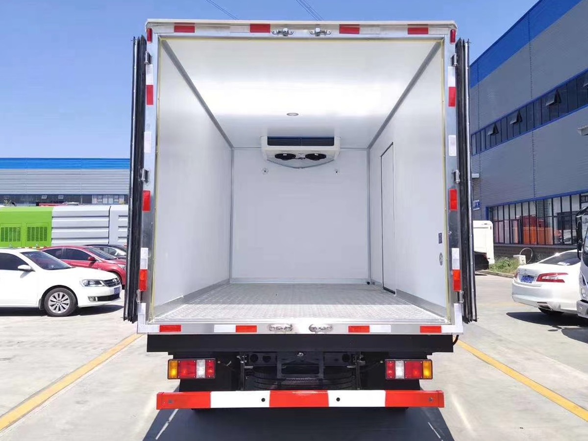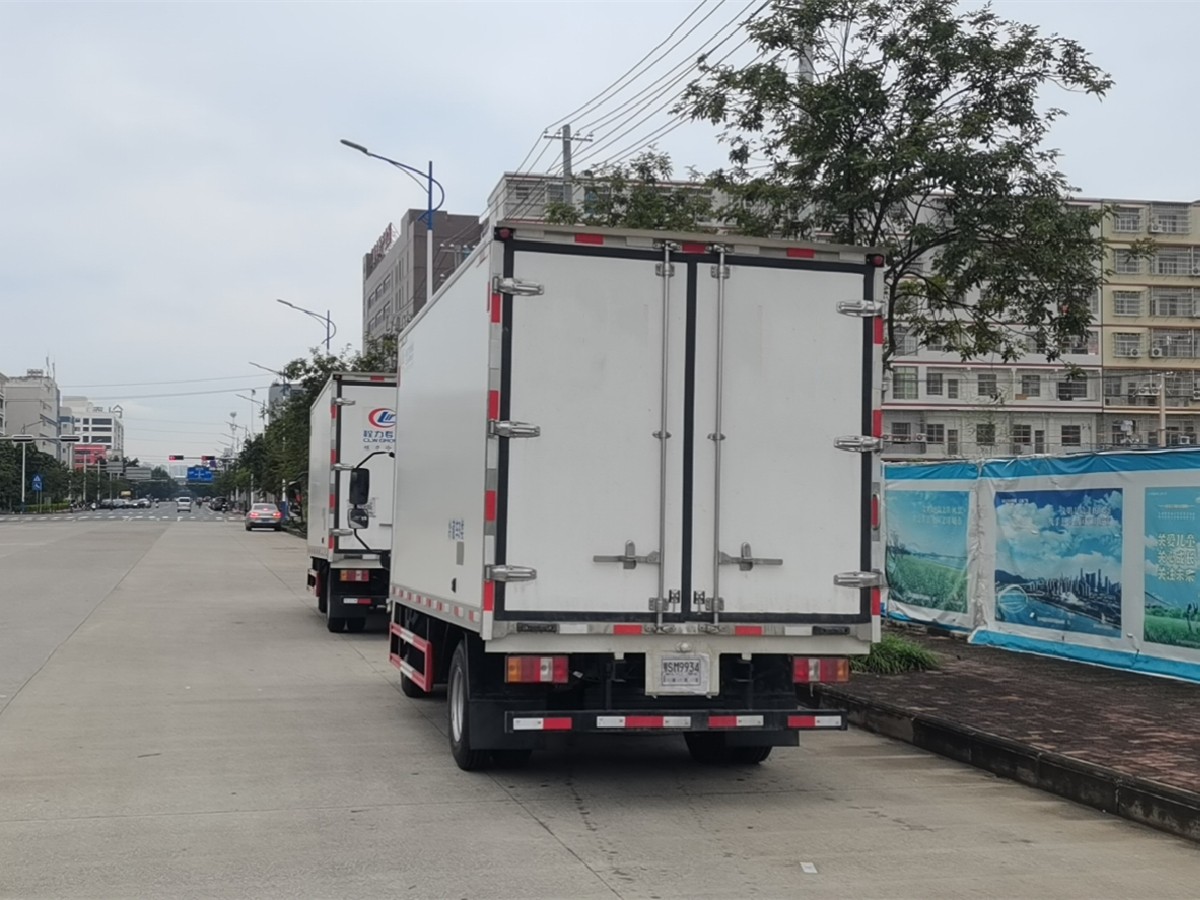 (2)廂板材質(zhì):內(nèi)外壁板選用國內(nèi)優(yōu)質(zhì)玻璃鋼(不吸光、隔熱性好、硬度強、抗氧化);中間保溫層為XPS擠塑聚笨板或者聚氨酯發(fā)泡;廂體厚度8CM。地板采用鋁花紋板,門邊條采用迷宮式橡膠密封條。