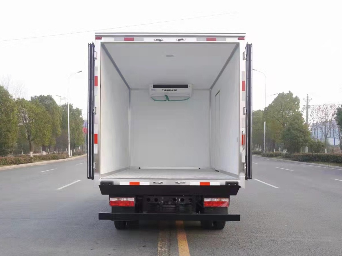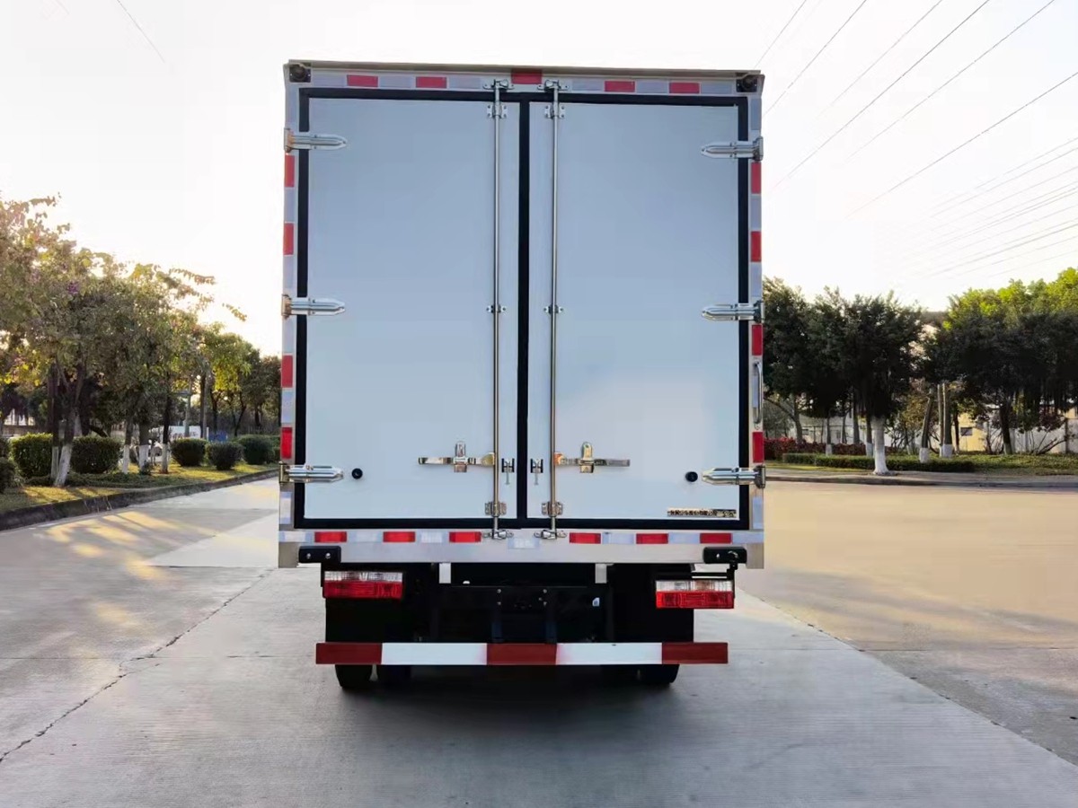 (2)廂板材質(zhì):內(nèi)外壁板選用國內(nèi)優(yōu)質(zhì)玻璃鋼(不吸光、隔熱性好、硬度強、抗氧化);中間保溫層為XPS擠塑聚笨板;廂體厚度8CM。地板采用鋁花紋板,門邊條采用迷宮式橡膠密封條。