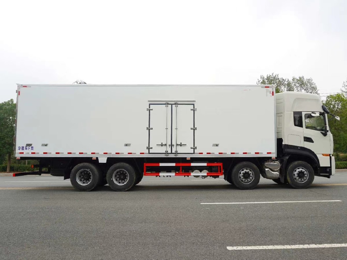 (2)廂板材質(zhì):內(nèi)外壁板選用國內(nèi)優(yōu)質(zhì)玻璃鋼(不吸光、隔熱性好、硬度強(qiáng)、抗氧化);中間保溫層為XPS擠塑聚笨板;廂體厚度8CM。地板采用鋁花紋板,門邊條采用迷宮式橡膠密封條。