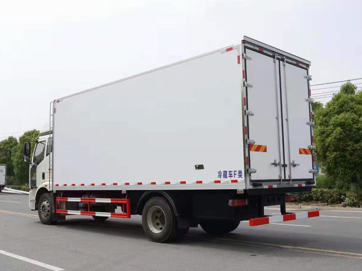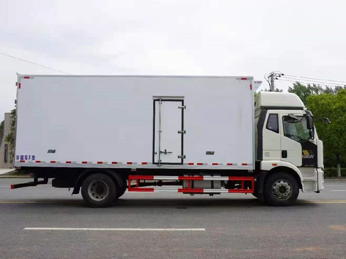 (2)廂板材質(zhì):內(nèi)外壁板選用國內(nèi)優(yōu)質(zhì)玻璃鋼(不吸光、隔熱性好、硬度強、抗氧化);中間保溫層為XPS擠塑聚笨板;廂體厚度8CM。地板采用鋁花紋板,門邊條采用迷宮式橡膠密封條。