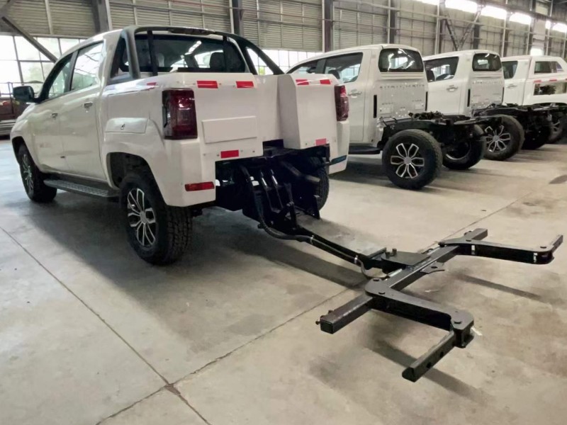 該車法定托舉質(zhì)量為1T,最大拖牽質(zhì)量為1.8T,該車使用新款專利產(chǎn)品輔助輪,使該車由托舉升級為拖牽,大大提高清障車作業(yè)效率,電動液壓單元的極限承壓3噸,請謹(jǐn)慎使用。