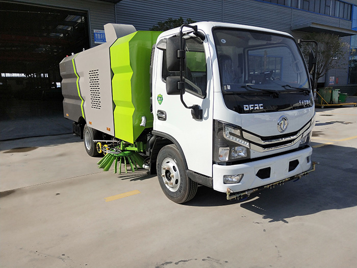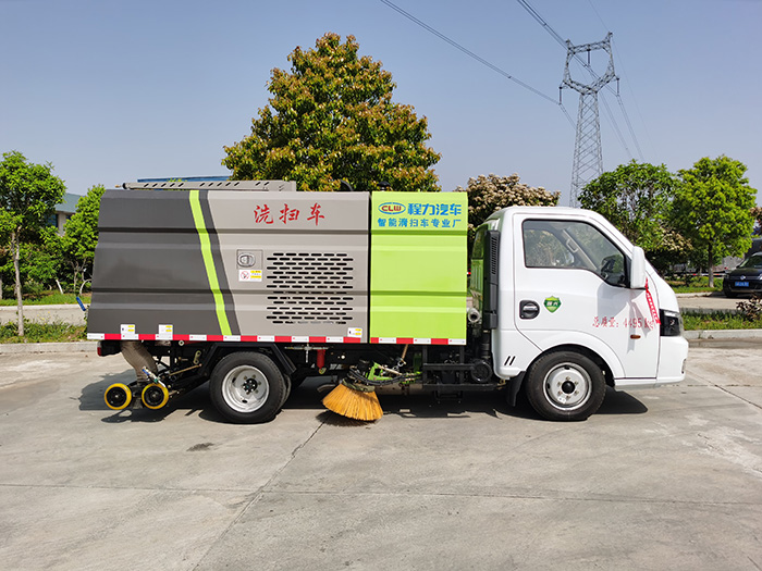 該車是采用東風(fēng)小多利卡/福瑞卡底盤改裝而成,集掃路車、灑水車和高壓清洗車功能于一體,具備路面清掃、路面洗刷、高壓清洗、低壓沖洗、路緣石洗刷、垃圾收集、污水回收、噴霧降塵和道路隔離墻清洗、小廣告清洗等多種作業(yè)功能。具有先進的智能化一鍵控制技術(shù),全部作業(yè)均在駕駛室內(nèi)完成,作業(yè)時,只需選定作業(yè)模式后,各作業(yè)機構(gòu)的啟動與關(guān)停由程序自動控制。有“全洗掃”、“左洗掃”、“右洗掃”、“全掃”、“左掃”和“右掃”、“全洗”、“左洗”和“右洗”9種作業(yè)模式可供選擇。
