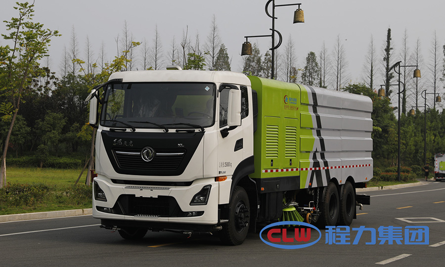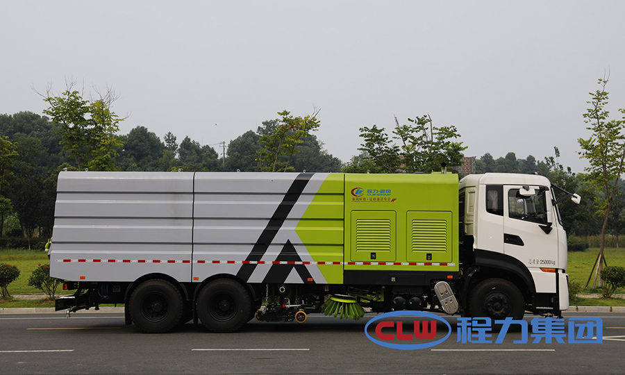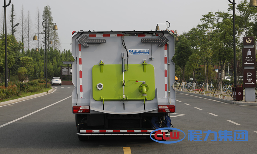 該車是采用東風天龍底盤改裝而成,集掃路車、灑水車和高壓清洗車功能于一體,具備路面清掃、路面洗刷、高壓清洗、低壓沖洗、路緣石洗刷、垃圾收集、污水回收、噴霧降塵和道路隔離墻清洗、小廣告清洗等多種作業(yè)功能。具有先進的智能化一鍵控制技術,全部作業(yè)均在駕駛室內完成,作業(yè)時,只需選定作業(yè)模式后,各作業(yè)機構的啟動與關停由程序自動控制。有“全洗掃”、“左洗掃”、“右洗掃”、“全掃”、“左掃”和“右掃”、“全洗”、“左洗”和“右洗”9種作業(yè)模式可供選擇。
