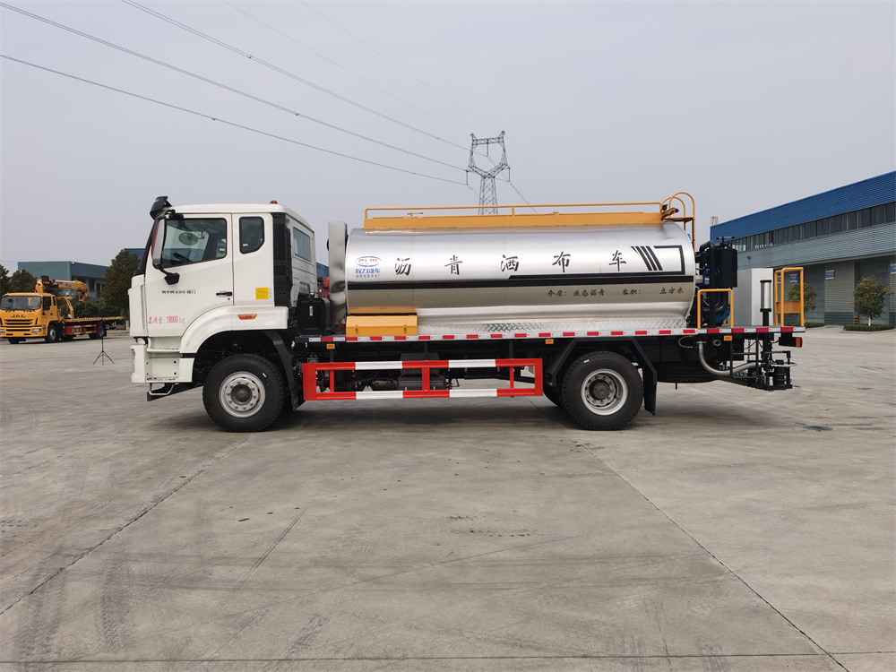 CL5181GLQ6LS型瀝青灑布車是一種專業(yè)灑布乳化瀝青、稀釋瀝青、熱瀝青、高粘度改性等瀝青的半智能科技產(chǎn)品。用于修筑高等級(jí)公路瀝青路面底層的透層油、防水層、粘結(jié)層的灑布。該灑布車由汽車底盤、瀝青罐體、瀝青泵送及噴灑系統(tǒng)、液壓系統(tǒng)、燃燒及導(dǎo)熱油加熱系統(tǒng)、控制系統(tǒng)、氣動(dòng)系統(tǒng)、操作平臺(tái)構(gòu)成。該車操作簡(jiǎn)便,在吸收國(guó)內(nèi)外同類產(chǎn)品各項(xiàng)技術(shù)的基礎(chǔ)上,增加了確保施工的質(zhì)量技術(shù)含量和突出改善施工條件、施工環(huán)境的人性化設(shè)計(jì)。其合理可靠的設(shè)計(jì)確保了瀝青的灑布均勻度,整車技術(shù)性能已達(dá)到世界先進(jìn)水平。